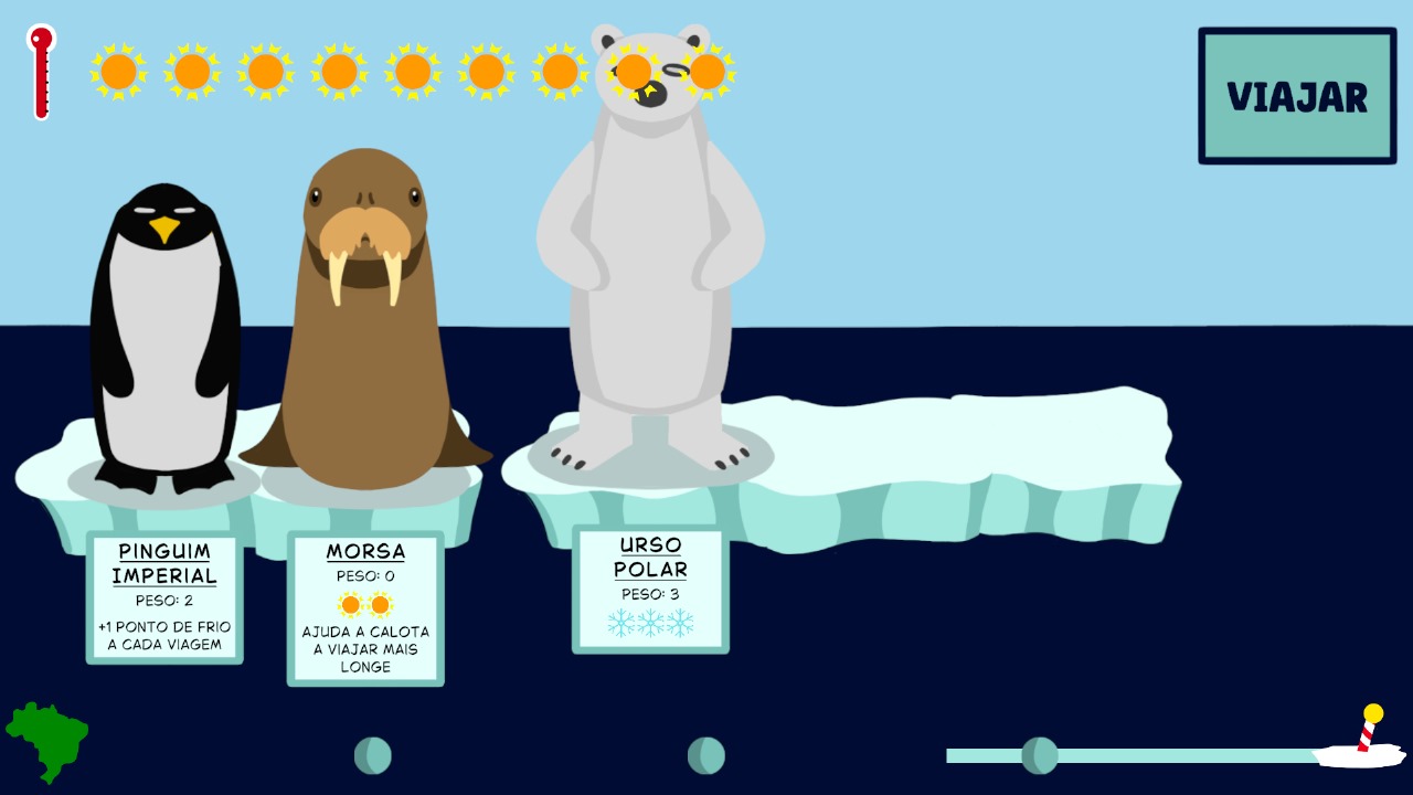 "À Deriva" é minha submissão para Game Jam - Desafio ODS 2025, com tema "Mudança Climática". Seu objetivo no jogo é o de guiar animais do ártico até o continente em uma calota polar sem deixar que esta derreta com o aquecimento global. Basta usar o mouse para jogar, e o jogo conta com uma aba para aprender a jogar no menu principal.